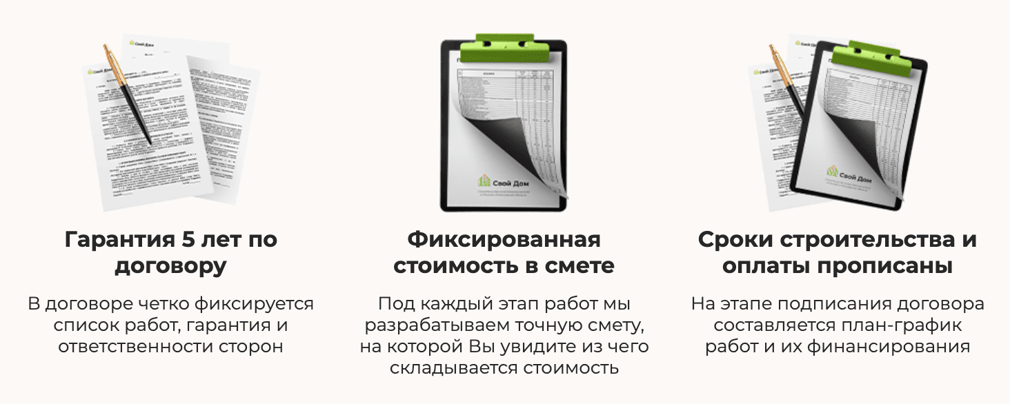 Вы получите на руки договор, в котором будут прописаны ваши гарантии и окончательная стоимость строительства